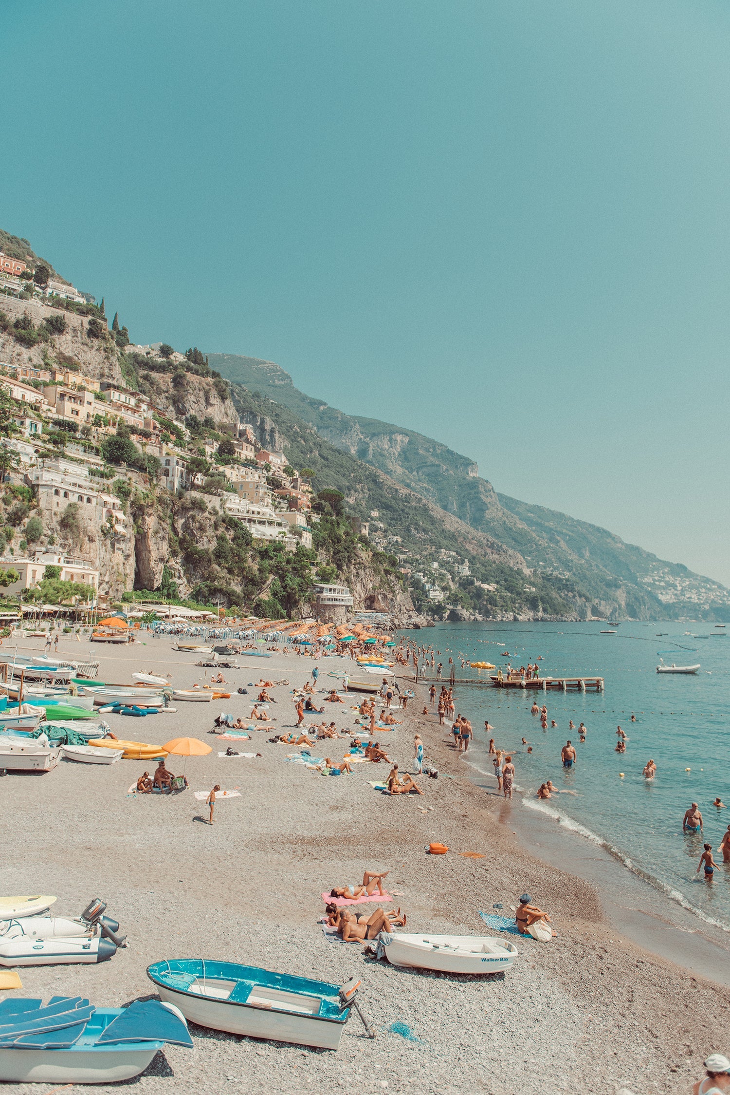 Breezy Beach Vibes is a vintage inspired photograph taken of Positano main beach featuring all the pretty little sail boats that this part of the coast loves so much.