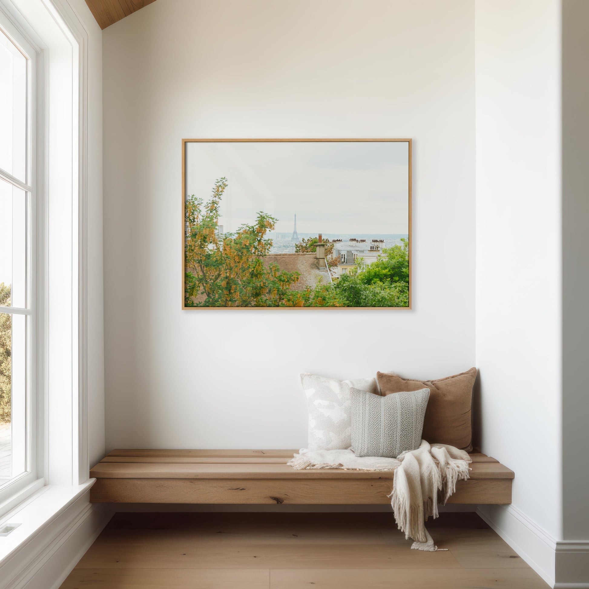 Belle Vue Parisienne translates as Beautiful Parisian View. This photograph was captured in Montmartre amidst its quaint rooftops and cobblestone streets with the Eiffel Tower in the distance. A romantic love letter to Paris.