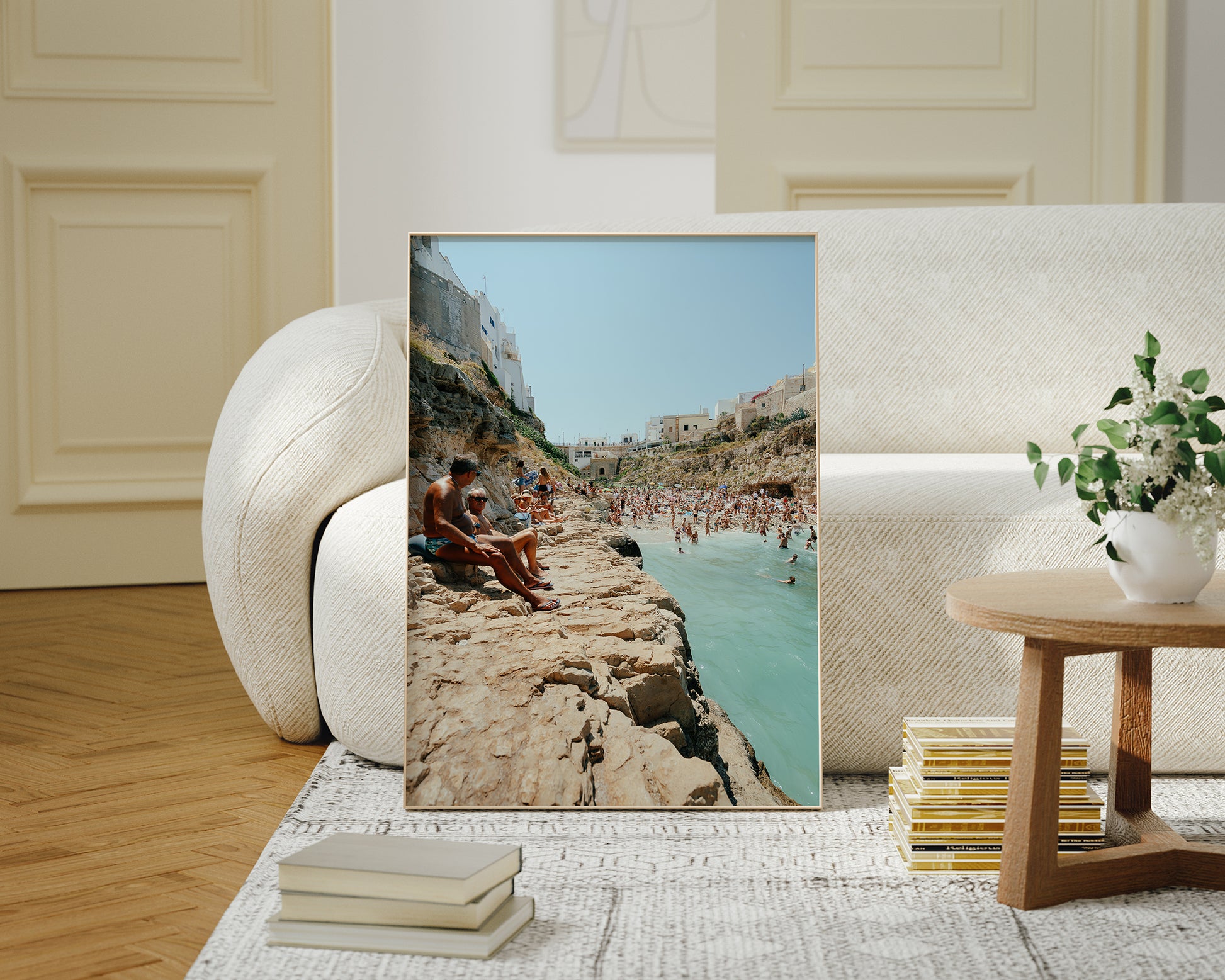 This Polignano a Mare photograph invites you to pause and soak in the beauty of summer. Featuring two tanned locals unwinding by the sea, it’s a celebration of the slow, sunlit days that make Italian summers unforgettable.