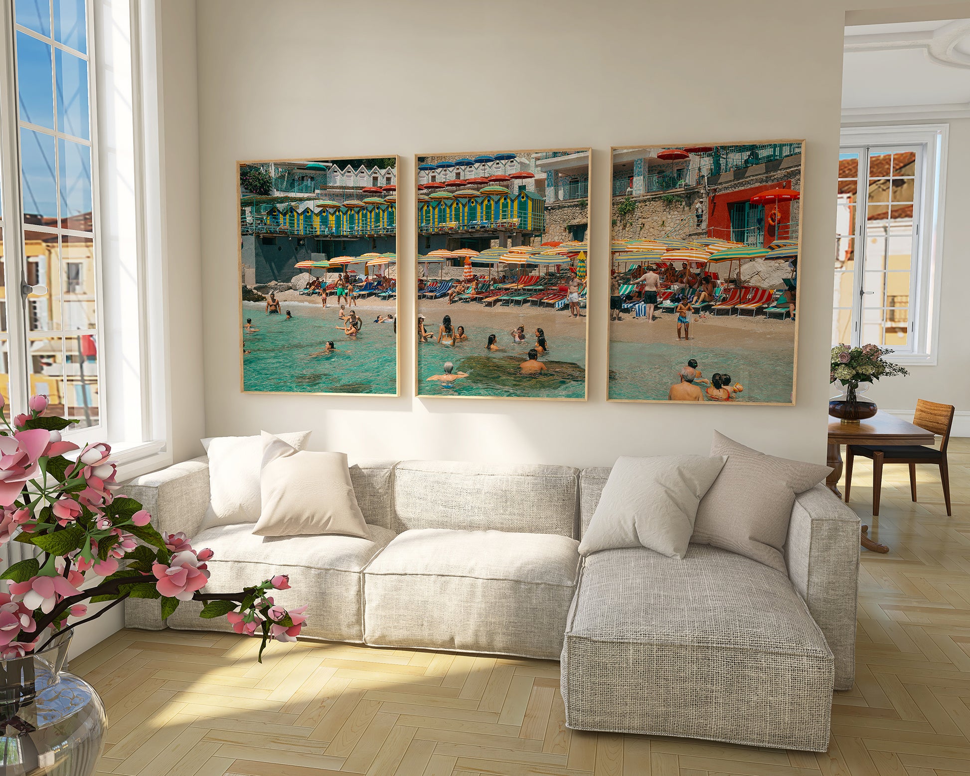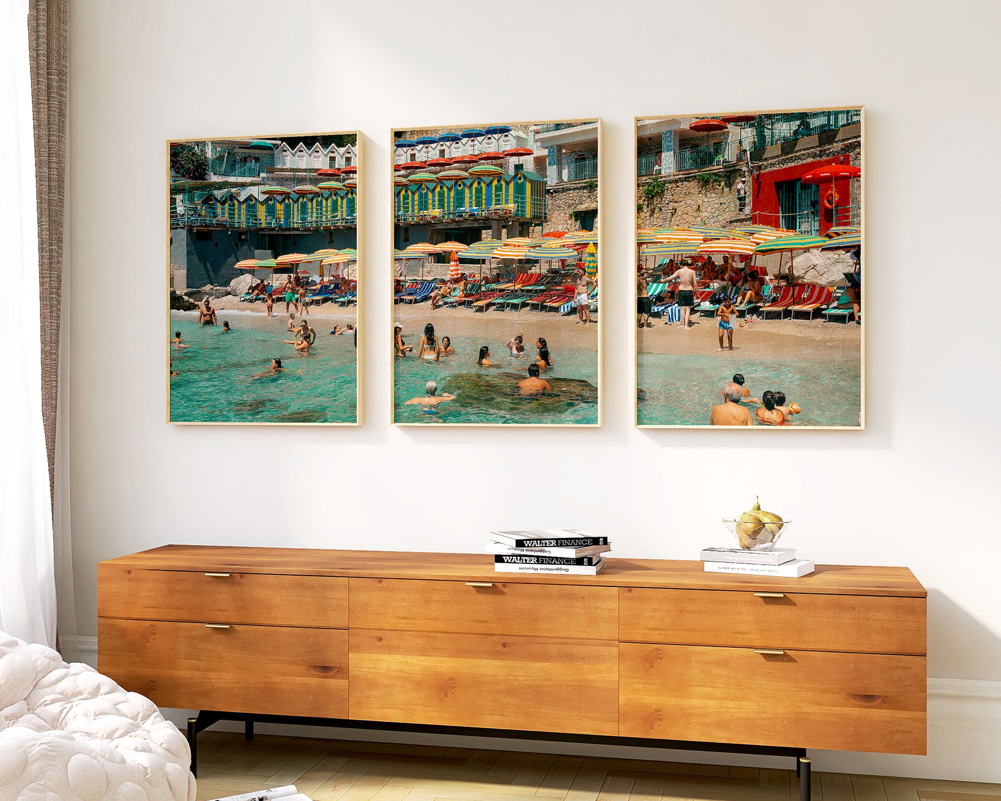A very special triptych print of Bagni Internazionali in Capri. This set consists of 3 vertical photographs created from one original photograph that gives a sense of flow across the prints. A real statement piece of art that is sure to attract the right attention.