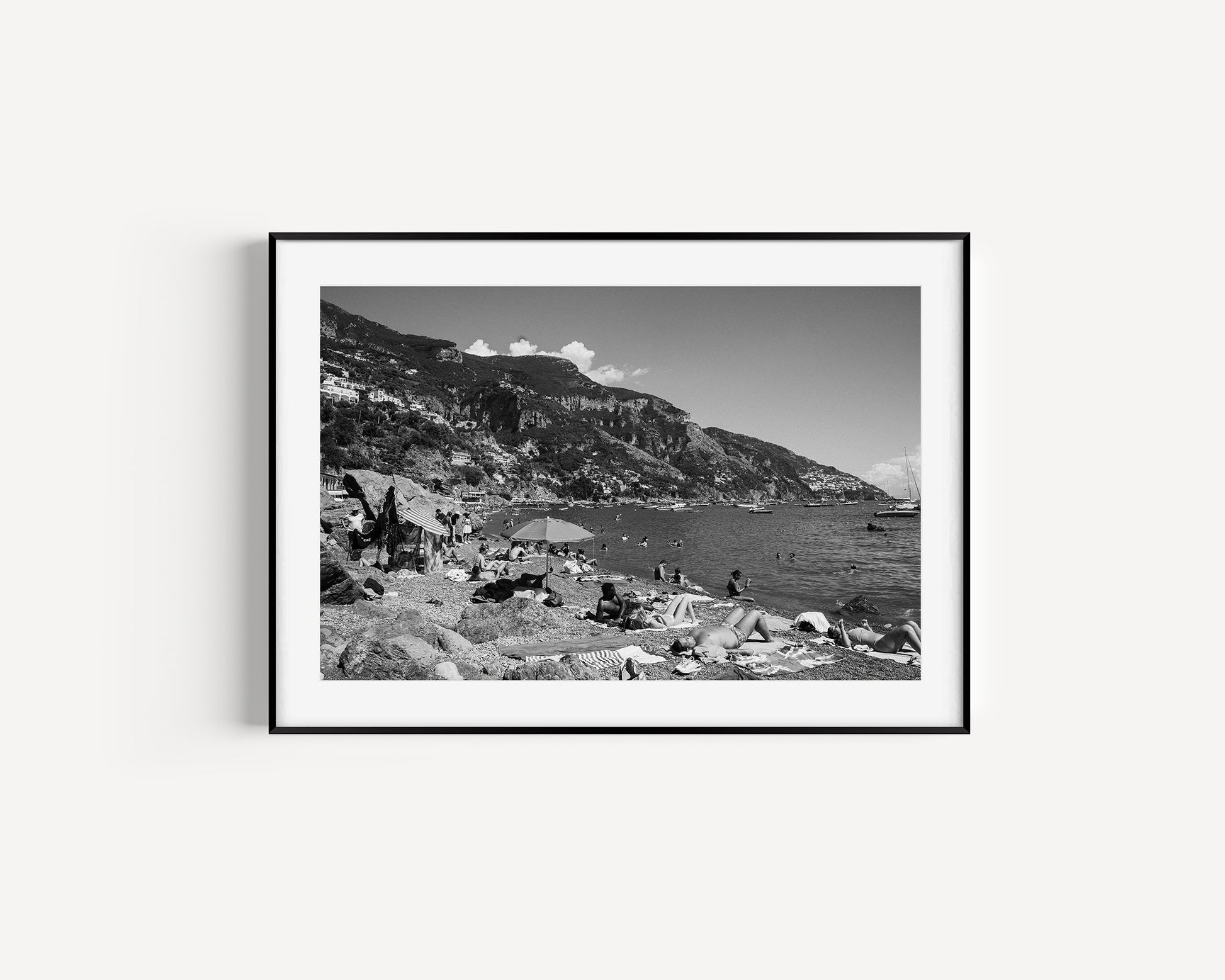 This image was taken in classic black and white in the middle of a sunny summers day in Positano in the Amalfi Coast.