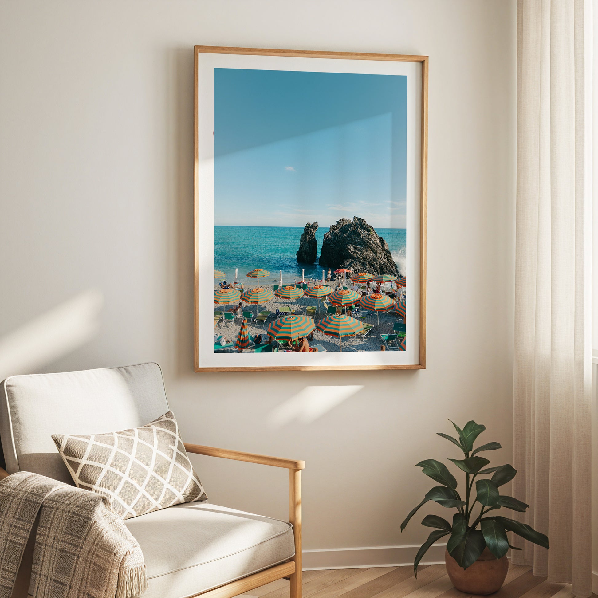 This Print has been created from fine art imagery of the popular Monterosso Beach in Cinque Terre, Italy.