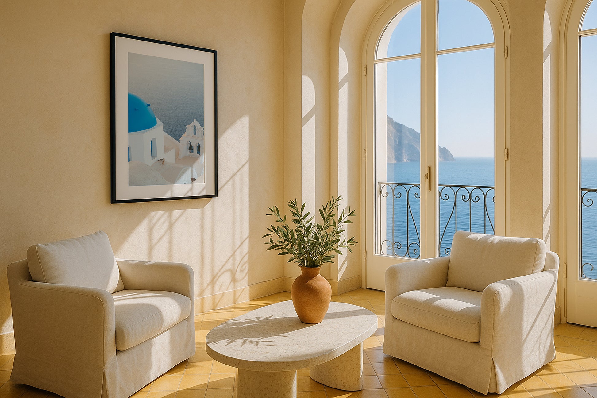 Coastal, minimalist, or modern Mediterranean interiors